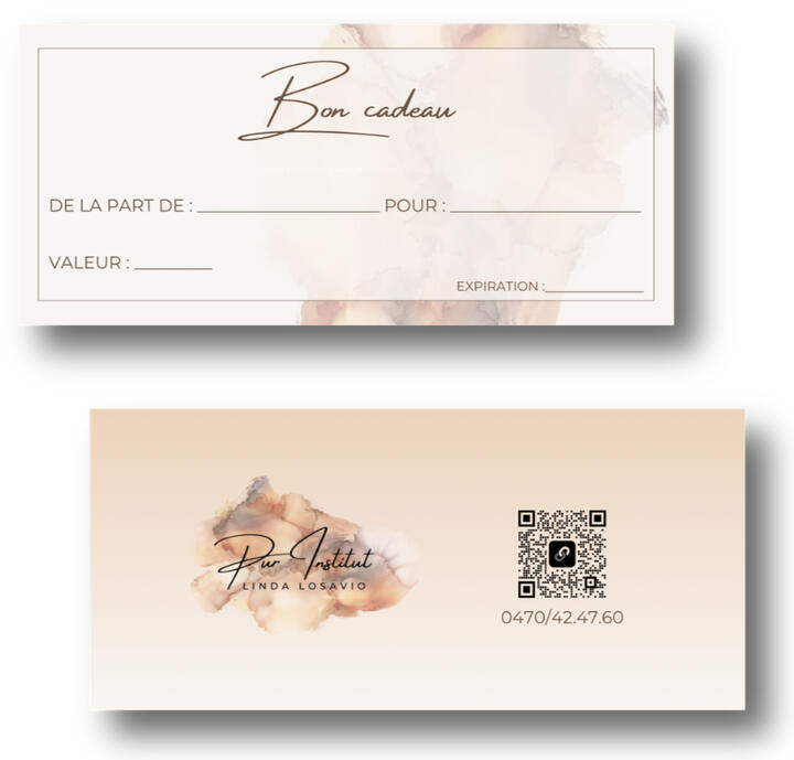 Visuales personalizados para imprimir, para sus bonos regalo o tarjetas de invitación, adaptados a su actividad.
