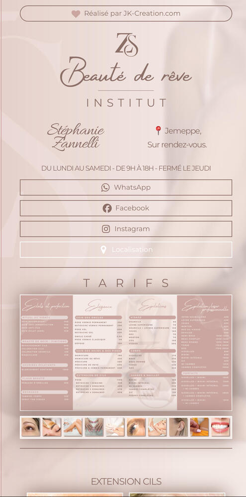 Estoy realmente feliz con el resultado, corresponde exactamente a lo que imaginaba para la renovación de mi instituto de belleza. Gracias por tu escucha, tu paciencia y tu talento. 🌟😍